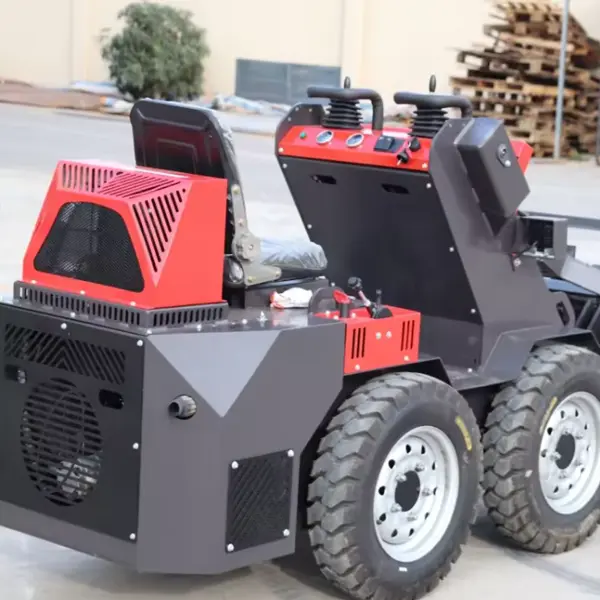 当社のハイパワー電動ミニスキッドステアローダーのシャーシは、設置面積内で 360 度回転できる特殊なスキッドステア設計を採用しています。この機動性により、ローダーは狭い作業場、狭い倉庫の通路、住宅の建物の間などでも効率的に作業できます。